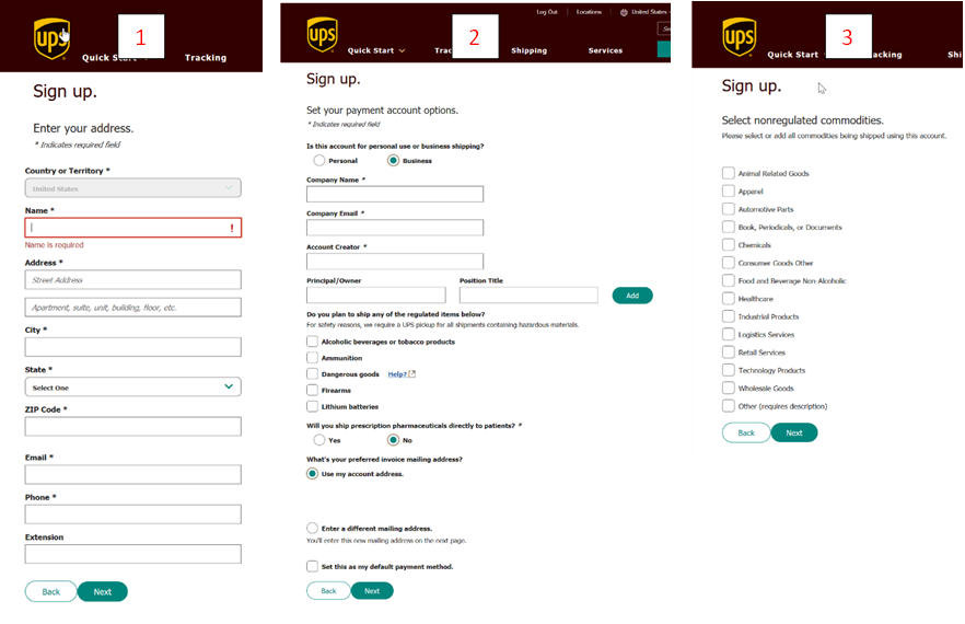 A UPS.com Login Account is required in order to register for a UPS Shipping Account.