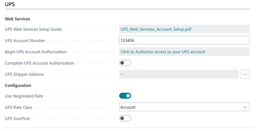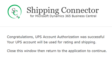UPS is now configured for use with Shipping Connector in Business Central.
