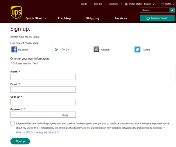 A UPS.com Login Account is required in order to register for a UPS Shipping Account.
